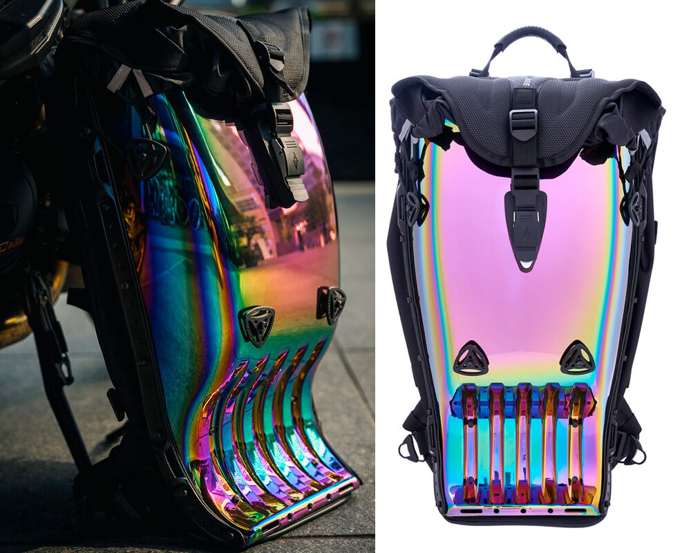 Point65 BOBLBEE 25L GTX CHIMERA は虹色に輝く鏡面仕上げされたシェルを使用した限定モデルです。